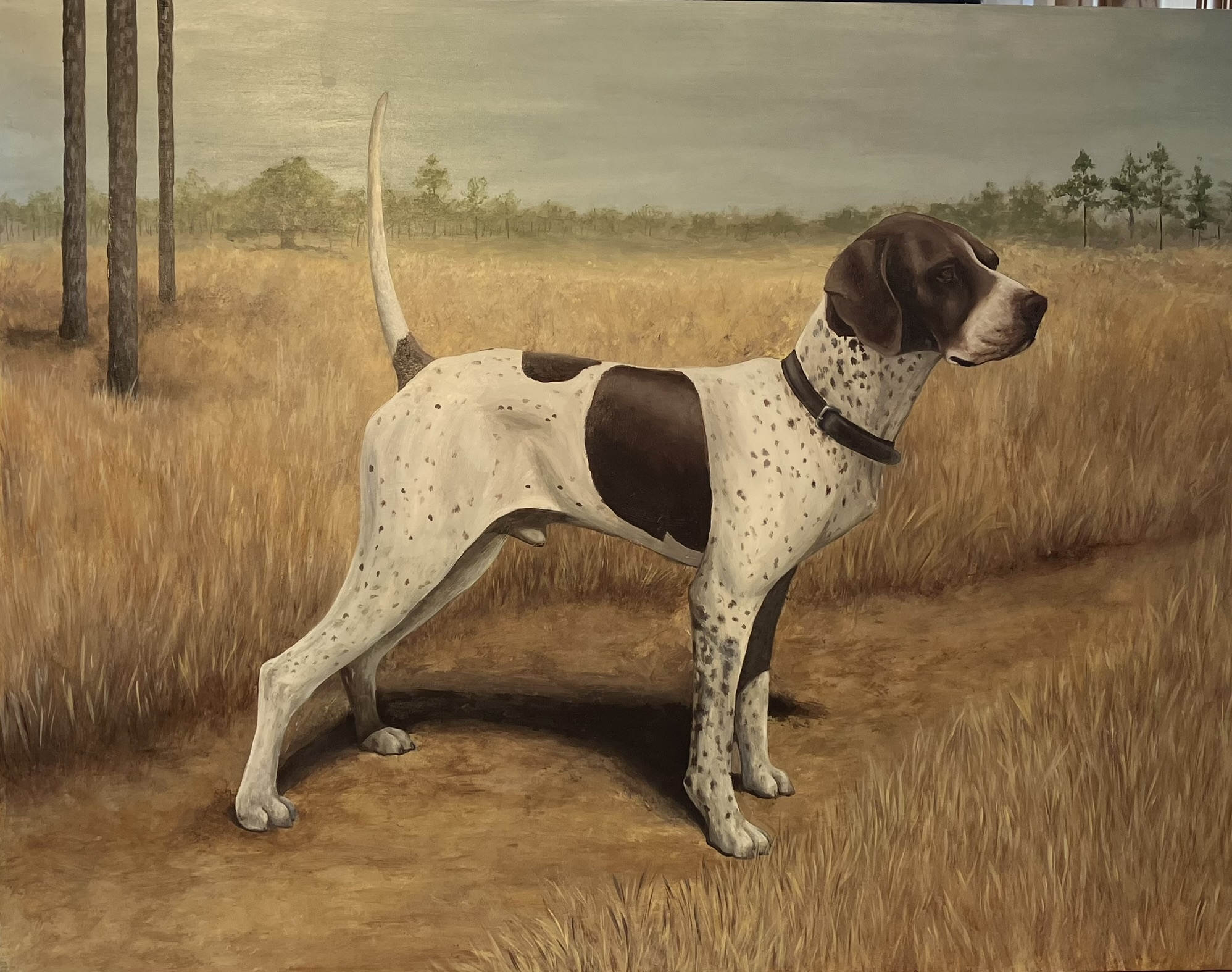 I grew up in a home where art and music were always present, it still is. The mediums I work in are acylics, watercolor, and leather (frequently with loomed beading). My subject matter is animal portraits (dogs and horses), wildlife, and flowers.
