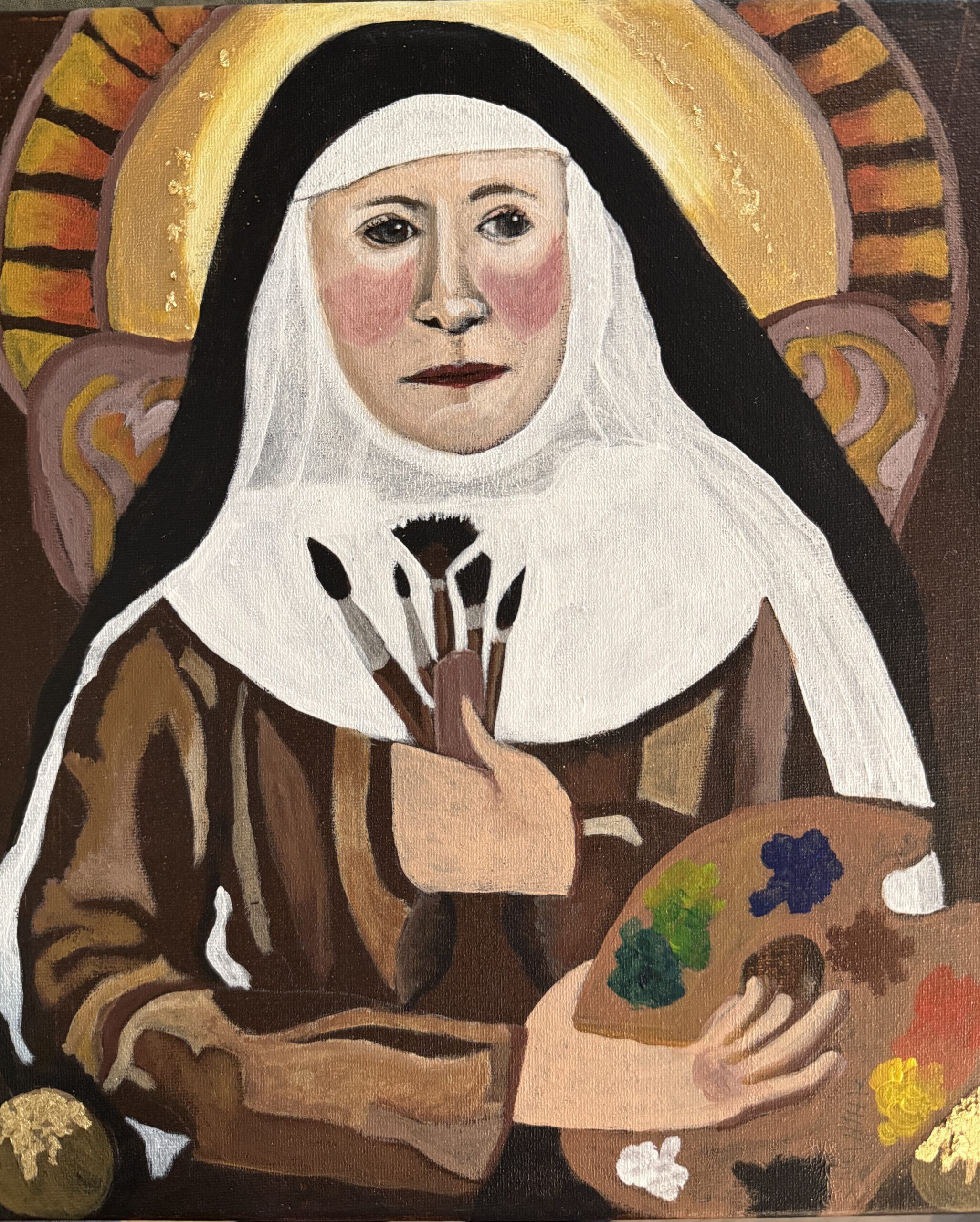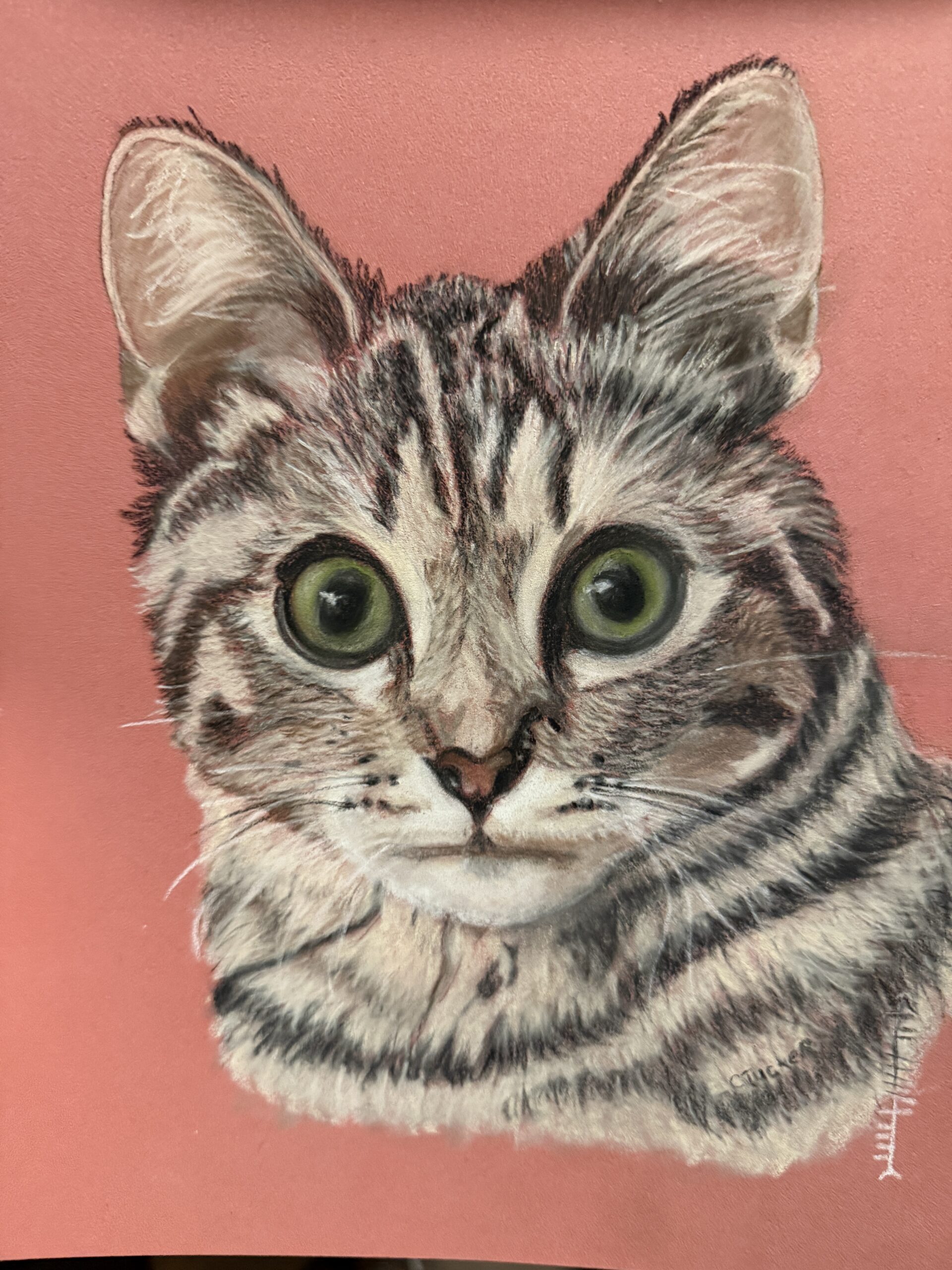 A Tennessee native Carla Tucker retired from 30-year career with the Federal government. She studied art at Sacramento State University, Sacramento, CA where she developed an interest in various art styles and techniques. Carla is currently living in Aiken, South Carolina where she is a member of the Aiken Center for the Arts and a board member of the Aiken Artist Guild. She found her passion painting pets using acrylics and pastels. Her paintings have been sold across the United States and exhibited in various venues in Aiken. Her realistic style captures the essence of the animals by concentrating on the eyes. She also has an interest abstract, mannerism, women artists of the Renaissance. She uses the abstract-mannerism style with exaggerated features to create these whimsical caricatures of herself using layers of transparent and opaque acrylics.